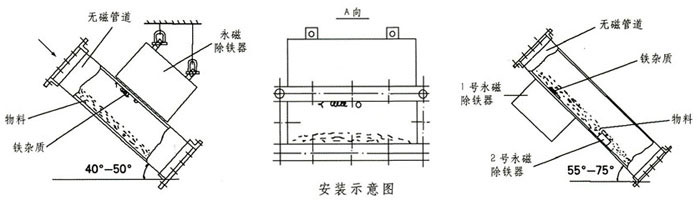 RCYA管道永磁除鐵器包括無(wú)磁管道和永磁鐵兩部分,專用于對(duì)封閉管道內(nèi)非磁性物料的除鐵,永磁除鐵器內(nèi)部采用高性能稀土強(qiáng)磁材料組成復(fù)合磁系。具有體積小、磁力大、重量輕、除鐵干凈、方便、無(wú)能耗、使用壽命長(zhǎng)等特點(diǎn)。適合沒有輸送皮帶,只能提供下料溜槽的場(chǎng)合。當(dāng)散狀物料經(jīng)過管道式永磁除鐵器時(shí),鐵雜物被高場(chǎng)強(qiáng)的永磁鐵所吸附,清除鐵雜質(zhì)時(shí),打開管道專用門將雜質(zhì)取除。該設(shè)備適用于含鐵量較少的場(chǎng)合,含鐵較多的場(chǎng)合應(yīng)選用自卸式除鐵器。主要應(yīng)用于水泥、化工、煤炭、塑料、耐火材料、建材、造紙等行業(yè)的下料管道中清除鐵雜物。